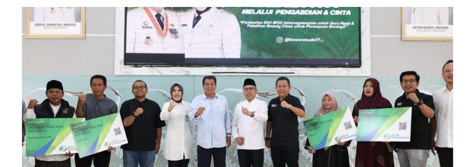 BBS.COM | TANGERANG – Bupati Tangerang Moch. Maesyal Rasyid menyerahkan bantuan perlindungan BPJS Ketenagakerjaan kepada 500 guru ngaji di wilayah utara Kabupaten Tangerang, Banten, Jumat (13/2/2026). Program tersebut menyasar guru ngaji yang tersebar di Kecamatan Mauk, Kosambi, Pakuhaji, Teluk Naga, dan Sukadiri.