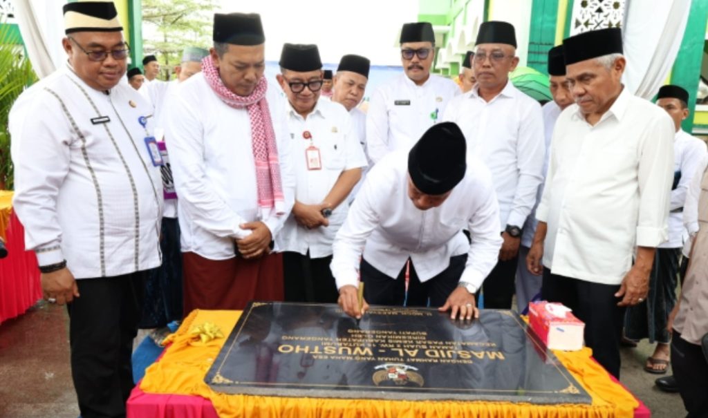 Pada kesempatan itu, Bupati menyerahkan bantuan sarana keagamaan dari Baznas Kabupaten Tangerang sebesar Rp20 juta kepada DKM Masjid Al Wustho.