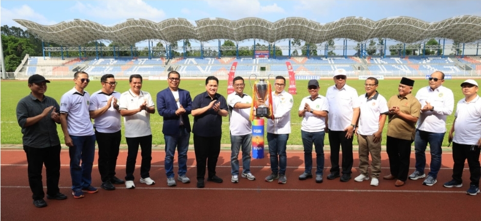 BBS.COM | TANGERANG – Ketua Umum Persatuan Sepak Bola Seluruh Indonesia (PSSI) Erick Thohir secara resmi membuka Liga 4 Piala Gubernur Banten di Stadion Benteng Reborn, Kota Tangerang, Minggu (29/3/2026). Pembukaan ditandai dengan pelemparan bola ke arah penonton sebagai simbol dimulainya kompetisi.
