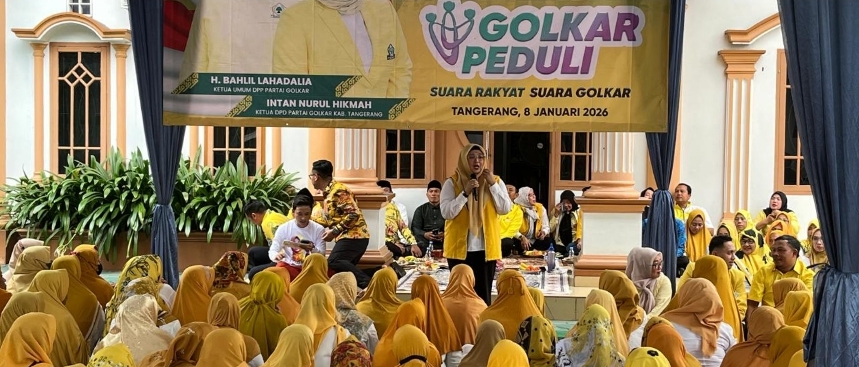 BBS.COM | TANGERANG – Ketua DPD Partai Golkar Kabupaten Tangerang, Intan Nurul Hikmah, membagikan 500 paket sembako gratis. Kepada warga Kecamatan Sepatan, Kamis (8/1/2026). Kegiatan ini merupakan tahap kedua program Golkar Peduli, sebagai bentuk kepedulian partai terhadap masyarakat yang membutuhkan.