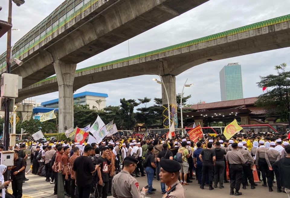 Di Pintu Barat. Tim dipimpin Ipda Ari Bayu bersama sembilan personel bersiaga penuh. Mengantisipasi potensi gangguan keamanan. Sementara itu, di Pintu Timur. Ipda Totok Setyono memimpin timnya mengawal sekitar 400 mahasiswa yang mengikuti aksi.