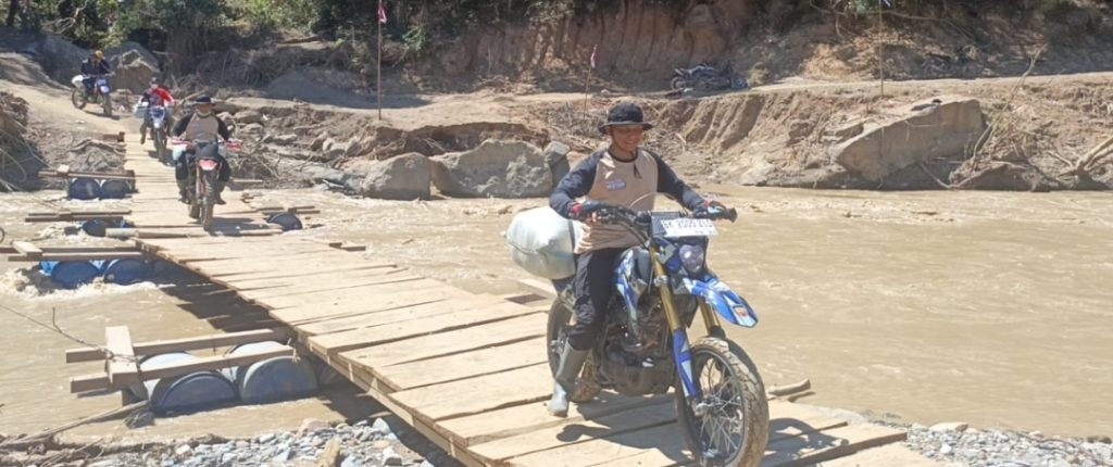 Untuk mencapai lokasi, rombongan Kapolres harus menggunakan sepeda motor trail. Karena akses jalan belum dapat dilalui kendaraan roda empat. Sejumlah jembatan penghubung dilaporkan putus akibat diterjang banjir bandang.