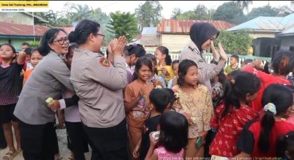 Srikandi Polwan Polres Langkat Hadirkan Keceriaan untuk Anak Korban Banjir