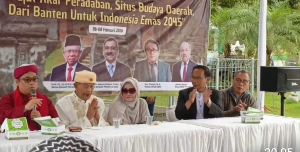 BBS.COM | BANTEN — Pimpinan Pondok Pesantren Manba’ul ‘Ulum Kasuren, KH Aby Muluk, memimpin doa bersama. Pada pembukaan Ekspedisi Budaya dan Sejarah Banten. Yang menjadi rangkaian Hari Pers Nasional (HPN) 2026, di kawasan Banten Lama, Jumat (6/2/2026).
