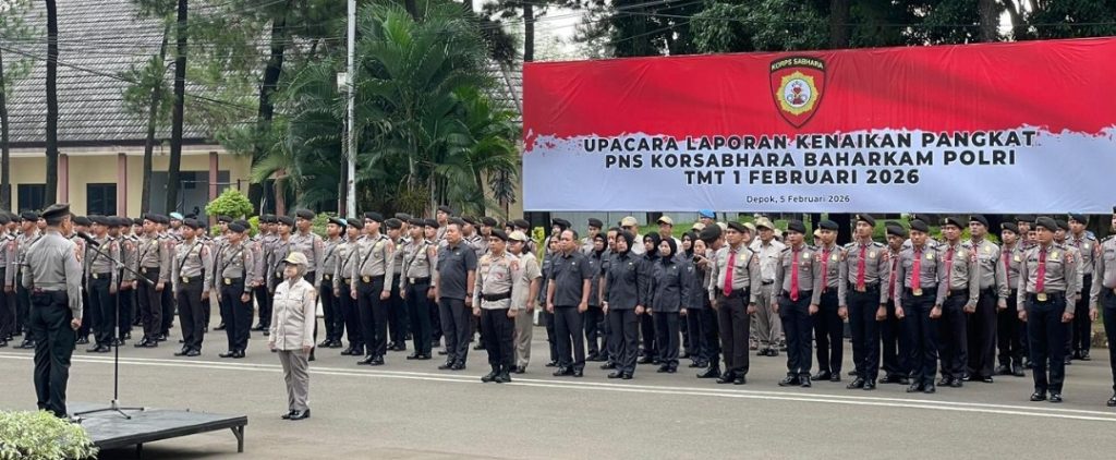 BBS.COM | DEPOK – Korps Sabhara (Korsabhara) Baharkam Polri melaksanakan upacara kenaikan pangkat Pegawai Negeri Sipil (PNS). Polri Terhitung Mulai Tanggal (TMT) 1 Februari 2026. Upacara berlangsung khidmat di Lapangan Apel Korsabhara Baharkam Polri, Kamis pagi (5/2/2026).