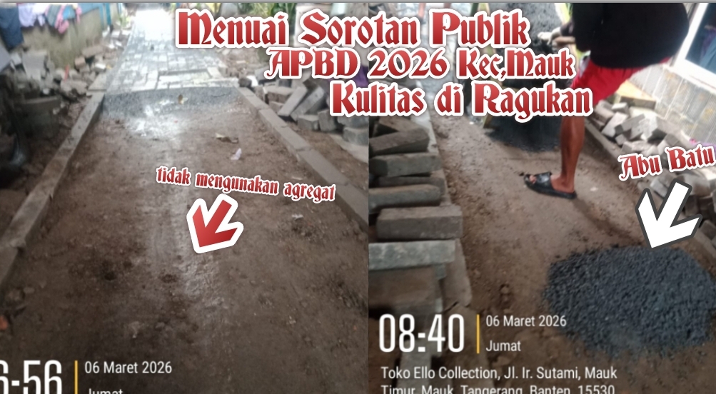 BBS.COM | TANGERANG – Penggunaan Anggaran Pendapatan dan Belanja Daerah (APBD) Tahun 2026 di Kecamatan Mauk, Kabupaten Tangerang. Menuai sorotan tajam. Lemahnya pengawasan serta dugaan pelanggaran teknis dalam proyek pembangunan paving block di Kampung Mauk RT 011/RW 004. Memunculkan pertanyaan serius tentang akuntabilitas pengelolaan anggaran publik. Sabtu,(4/4/2026)