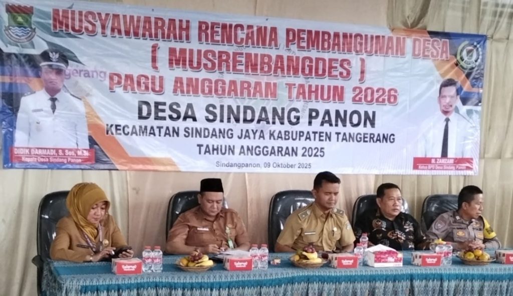 BBS.COM | TANGERANG – Pemerintah Desa Sindang Panon menggelar Musyawarah Rencana Pembangunan Desa (Musrenbangdes). Di aula kantor desa pada hari ini. Acara ini dipimpin langsung oleh Kepala Desa Sindang Panon, Dikdik Darmadi, S.Sos, dan dihadiri oleh berbagai unsur masyarakat. Dan pemangku kepentingan.Senin (13/10/2025)
