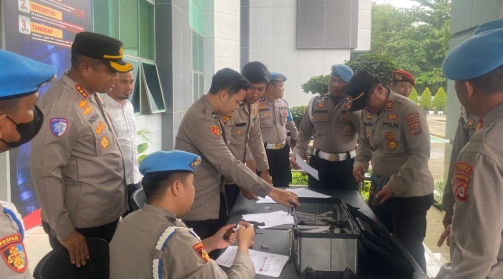 BBS.COM | TANGERANG – Polresta Tangerang melakukan pemeriksaan senjata api (senpi) milik seluruh personel. Termasuk anggota dari polsek jajaran dan personel yang bertugas bantuan kendali operasi (BKO), pada Senin (9/3/2026). Pemeriksaan dilakukan setelah apel pagi di Mapolresta Tangerang.
