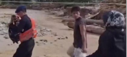 Brimob Selamatkan Bayi di Tengah Banjir Tapanuli Selatan