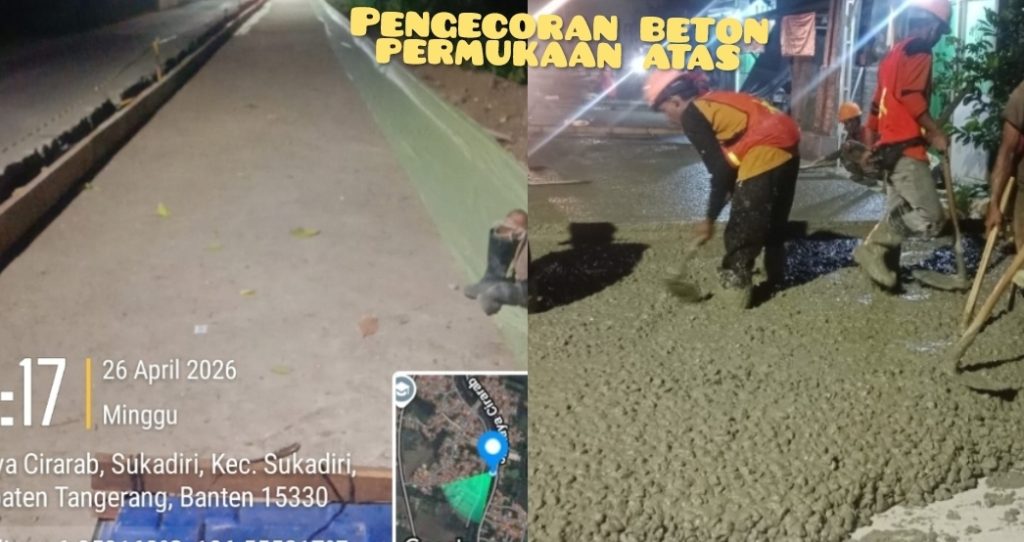 Pekerjaan pengecoran beton permukaan atas dilaporkan dilakukan pada Minggu (26/4/2026) malam. Namun, pelaksanaannya juga disorot karena pemasangan lapisan plastik tidak dilakukan secara menyeluruh. Melainkan hanya pada bagian sisi kiri dan kanan.