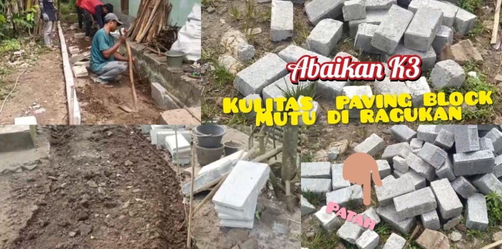 Lebih memprihatinkan, material paving block yang digunakan terlihat banyak yang patah dan diduga tidak sesuai spesifikasi Rencana Anggaran Biaya (RAB). Temuan ini mengindikasikan adanya potensi pelanggaran kontrak sekaligus pemborosan anggaran.