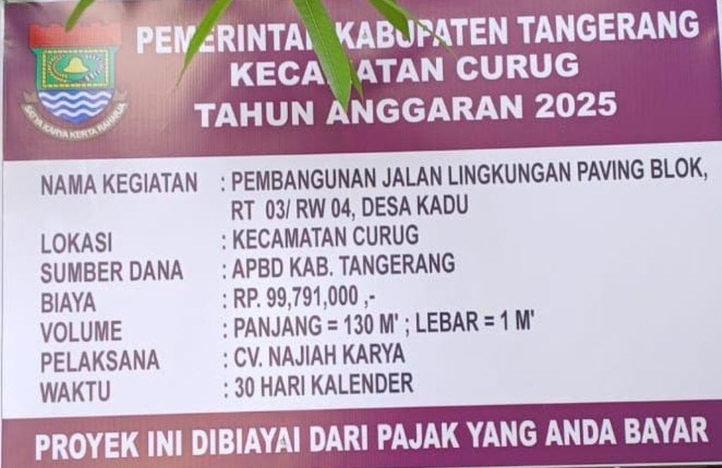 BBS.COM | TANGERANG, Kamis 18 September 2025 – Proyek pemasangan paving blok di Desa Kadu, RT 03 RW 04, Kecamatan Curug,Kabupaten Tangerang, APBD 2025. Menuai kritik tajam dari masyarakat dan aktivis. Proyek yang semestinya menjadi sarana peningkatan infrastruktur lingkungan, justru diduga dikerjakan asal-asalan tanpa memperhatikan standar teknis maupun aspek keselamatan kerja.
