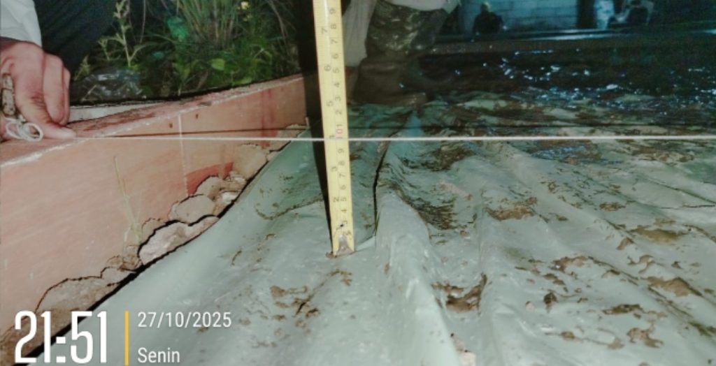 “Pemasangan bekisting dilakukan terlebih dahulu, baru agregat disebar. Ini menyebabkan ketebalan beton berkurang dari yang ditentukan dalam RAB. Selain itu, penyiraman permukaan beton yang seharusnya dilakukan selama tujuh hari penuh, diduga tidak akan dilaksanakan,” ujar Imandudin.