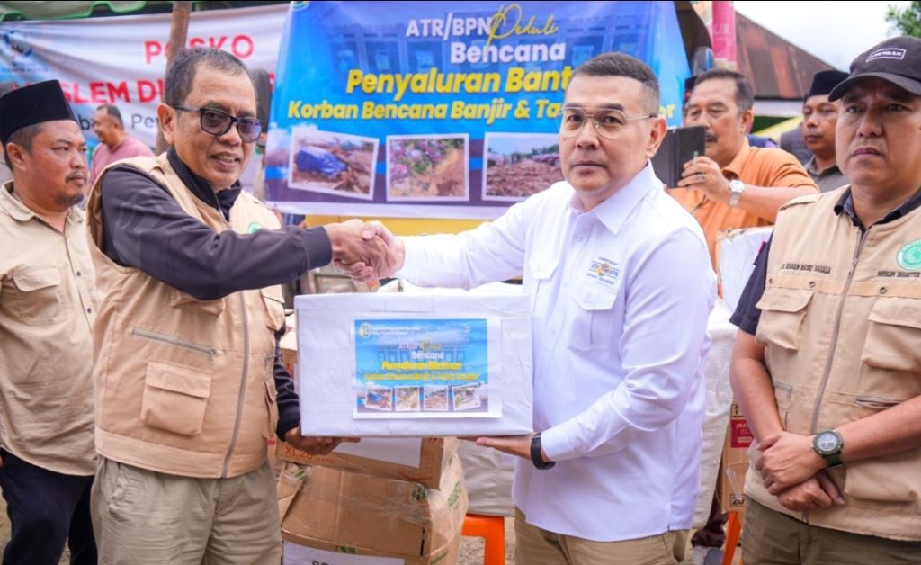 BBS.COM | TAPANULI SELATAN – Kementerian Agraria dan Tata Ruang/Badan Pertanahan Nasional (ATR/BPN) menyalurkan bantuan untuk warga korban banjir dan longsor di Desa Tolang Julu, Kecamatan Sayur Matinggi, Kabupaten Tapanuli Selatan, Sumatera Utara. Bantuan tersebut diserahkan langsung oleh Wakil Menteri ATR/Wakil Kepala BPN. Ossy Dermawan, kepada Wakil Sekretaris Jenderal MUI. Bidang Penanggulangan Bencana, KH Mabroer MS, pada Rabu (10/12/2025).